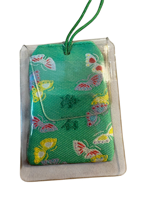 Omamori giallo e verde “SUCCESSO AUGURATO DAL SANTUARIO”