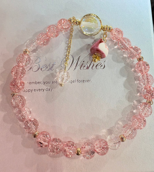 Bracciale Gatto Maneki neko giapponese in cristallo rosa 6mm