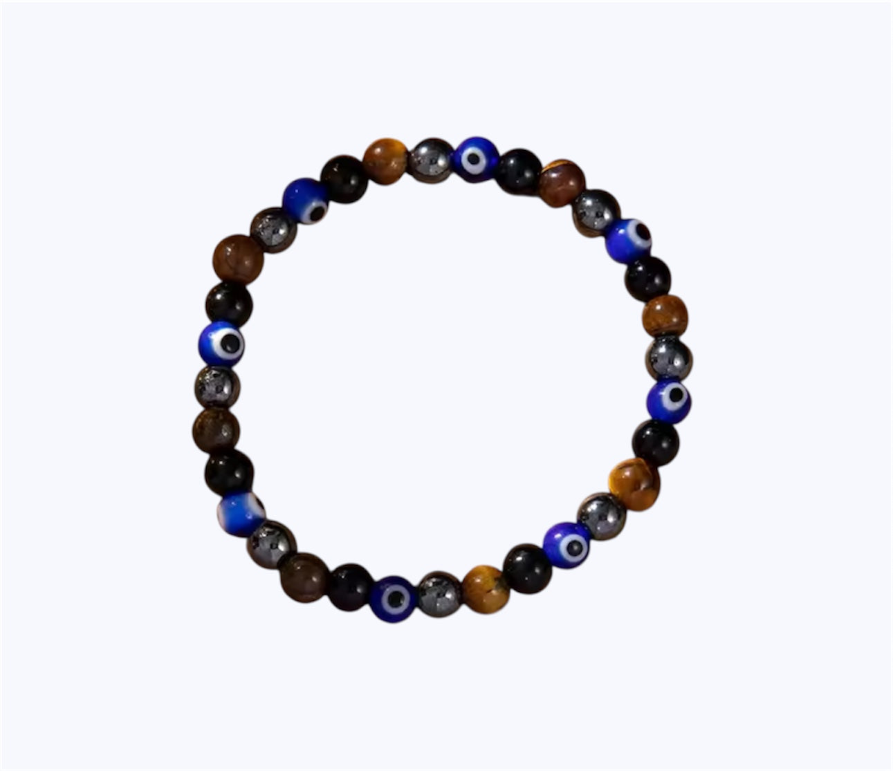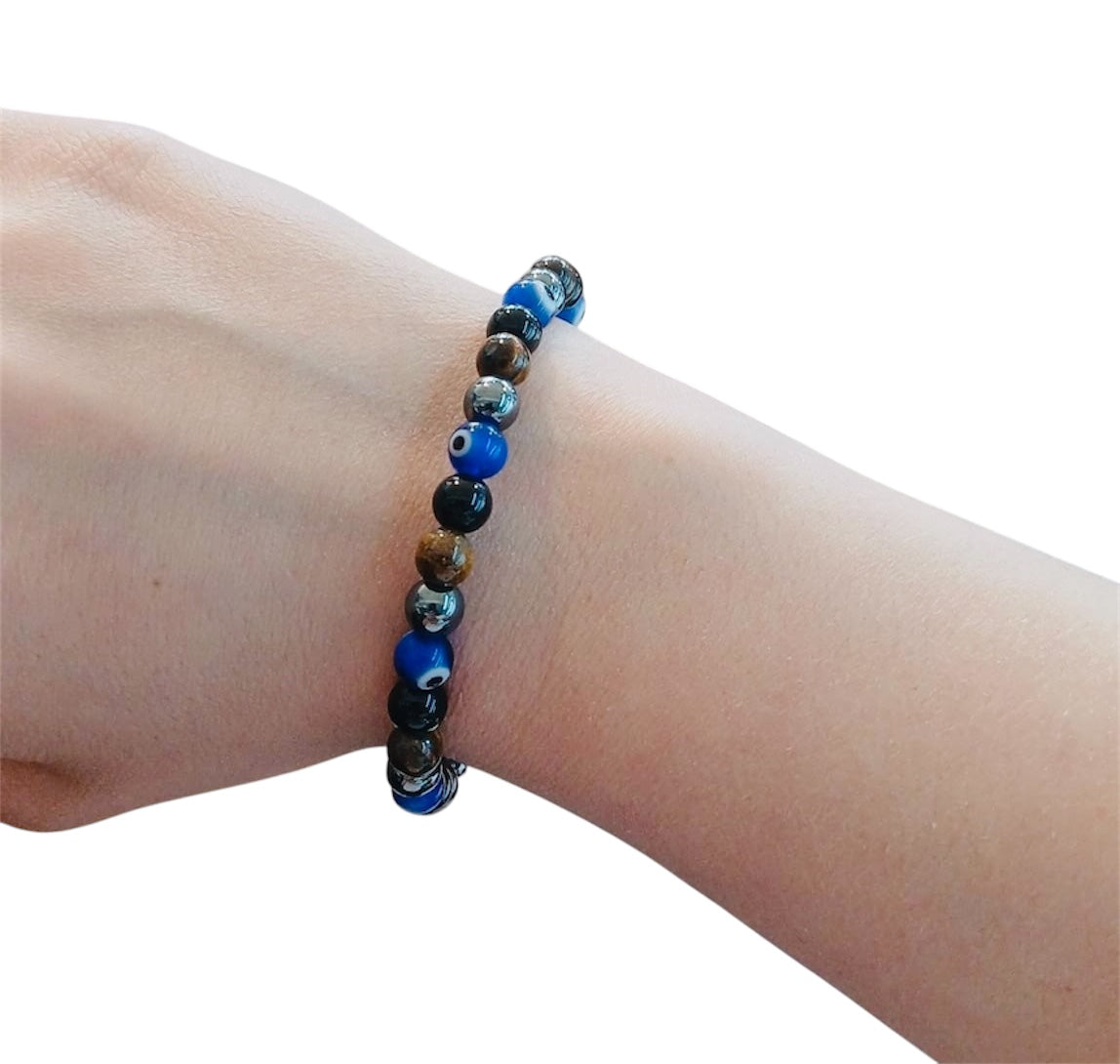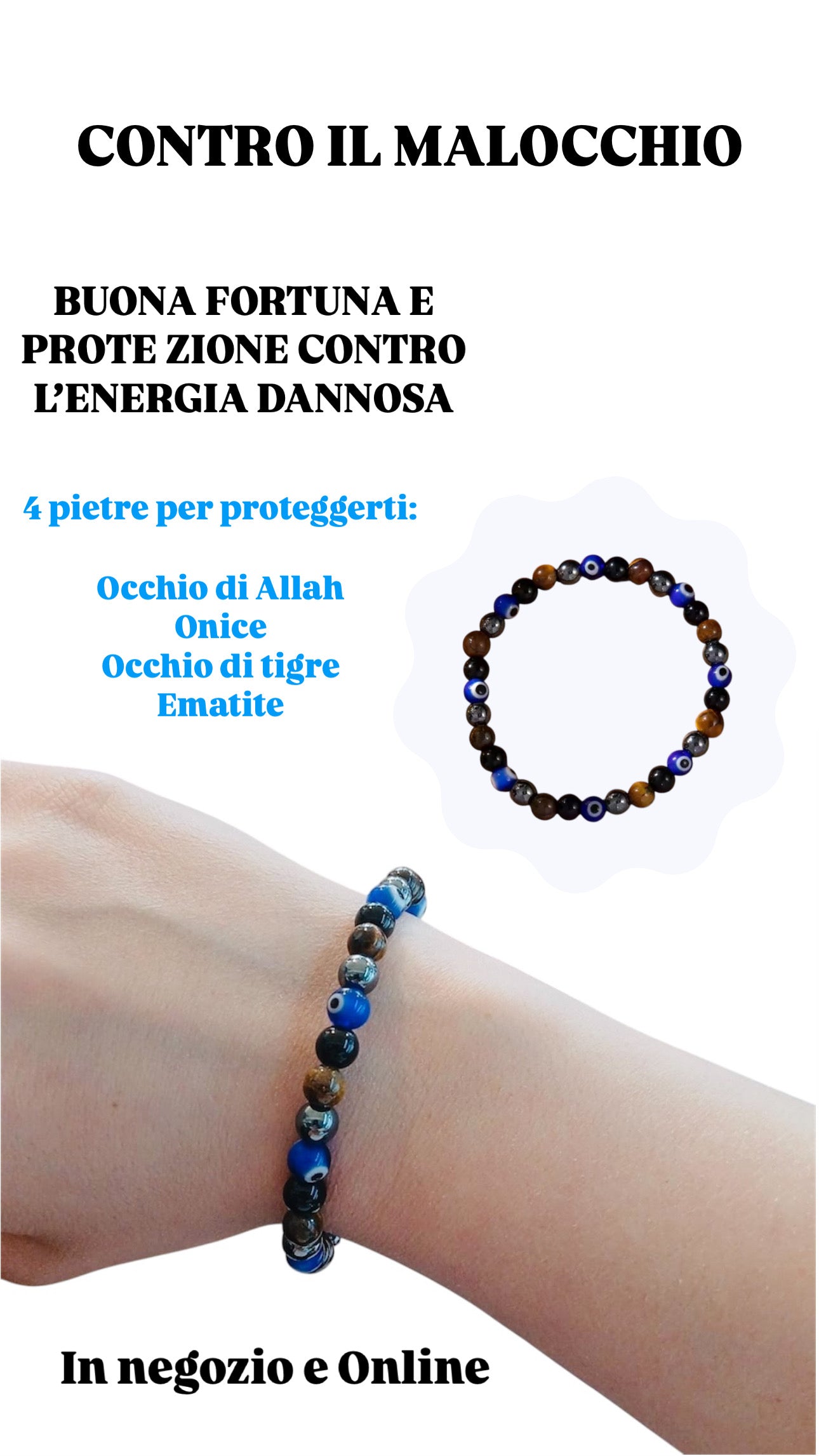 Bracciale 4 pietre di Protezione con Occhio di Allah, Onice, Occhio di tigre, Ematite