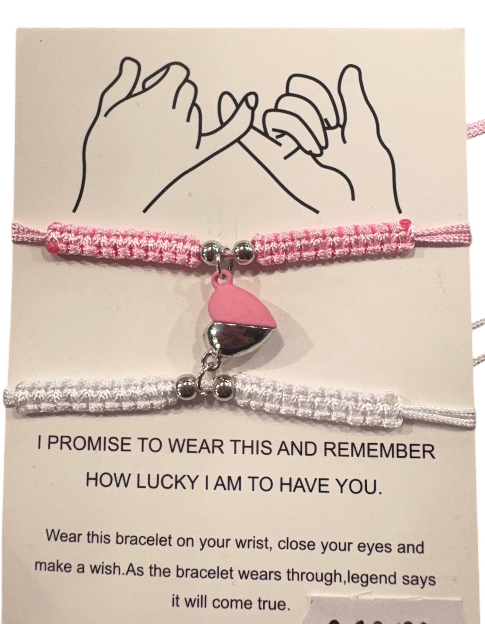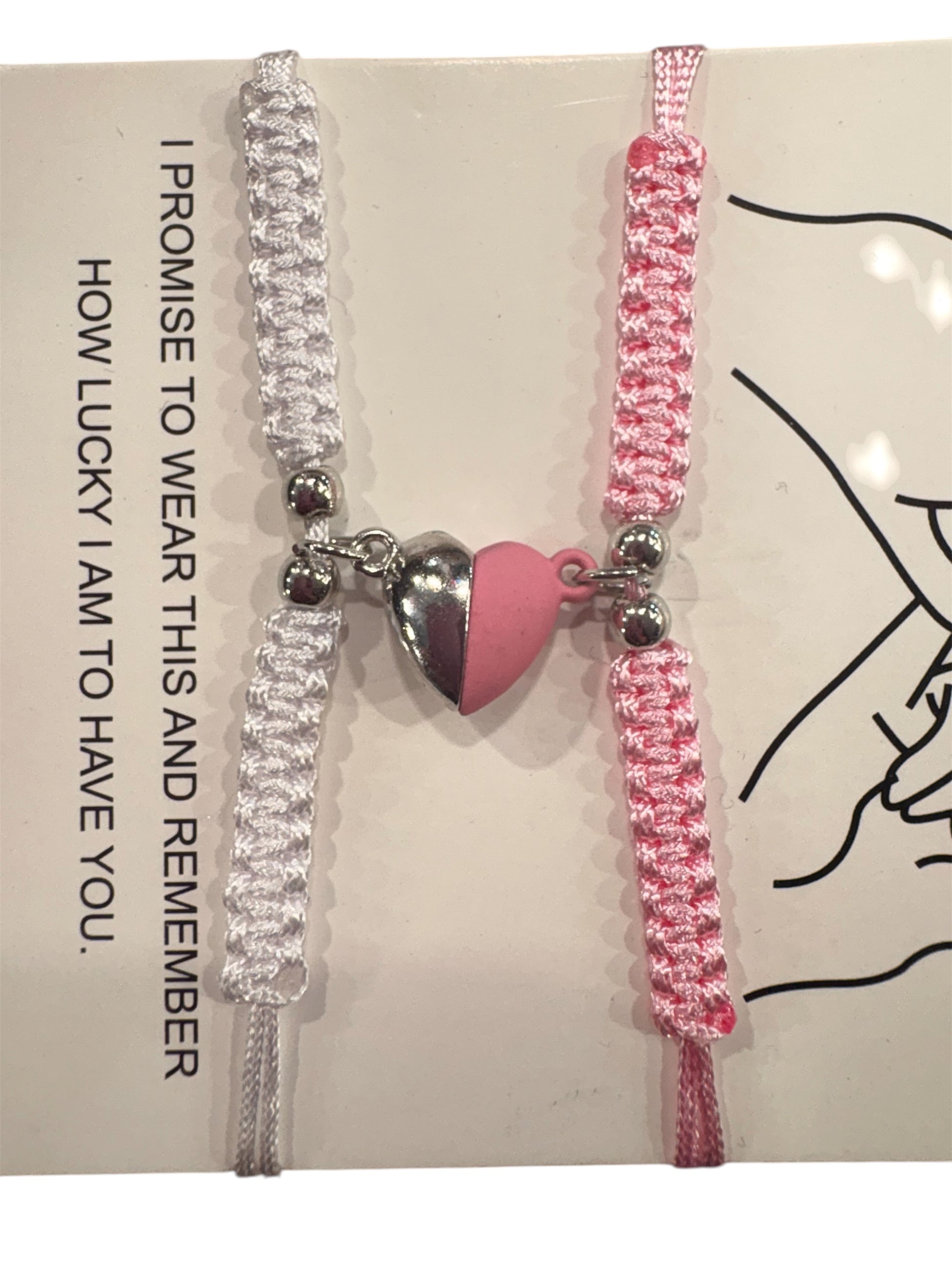 Set di braccialetti dell'amicizia o di coppia caratterizzati da un cuore magnetico che si unisce quando i due bracciali sono vicini. Questi bracciali sono realizzati con una corda intrecciata a mano(spesso chiamata corda coreana o macramè) e sono progettati per simboleggiare un legame speciale.