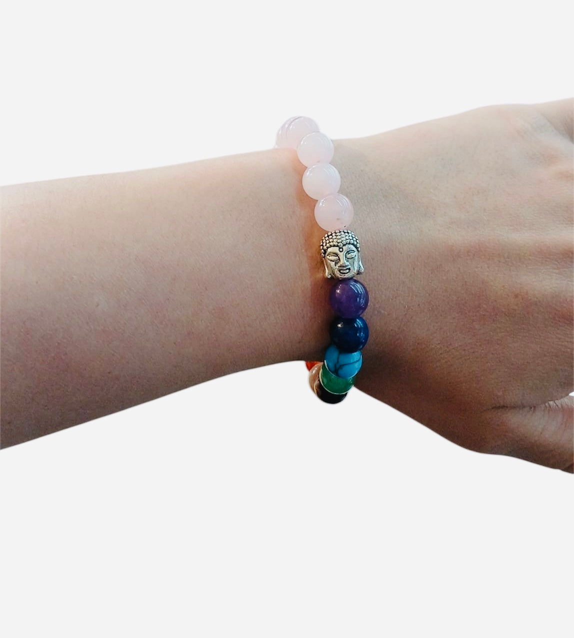 Bracciale Chakra e Buddha con Quarzo Rosa