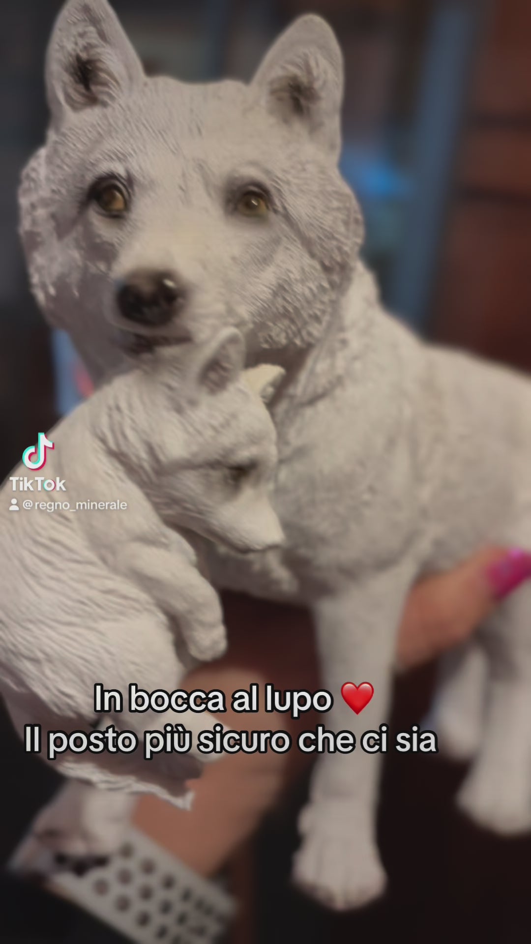 Mamma lupo che protegge il suo piccolo mettendolo al sicuro