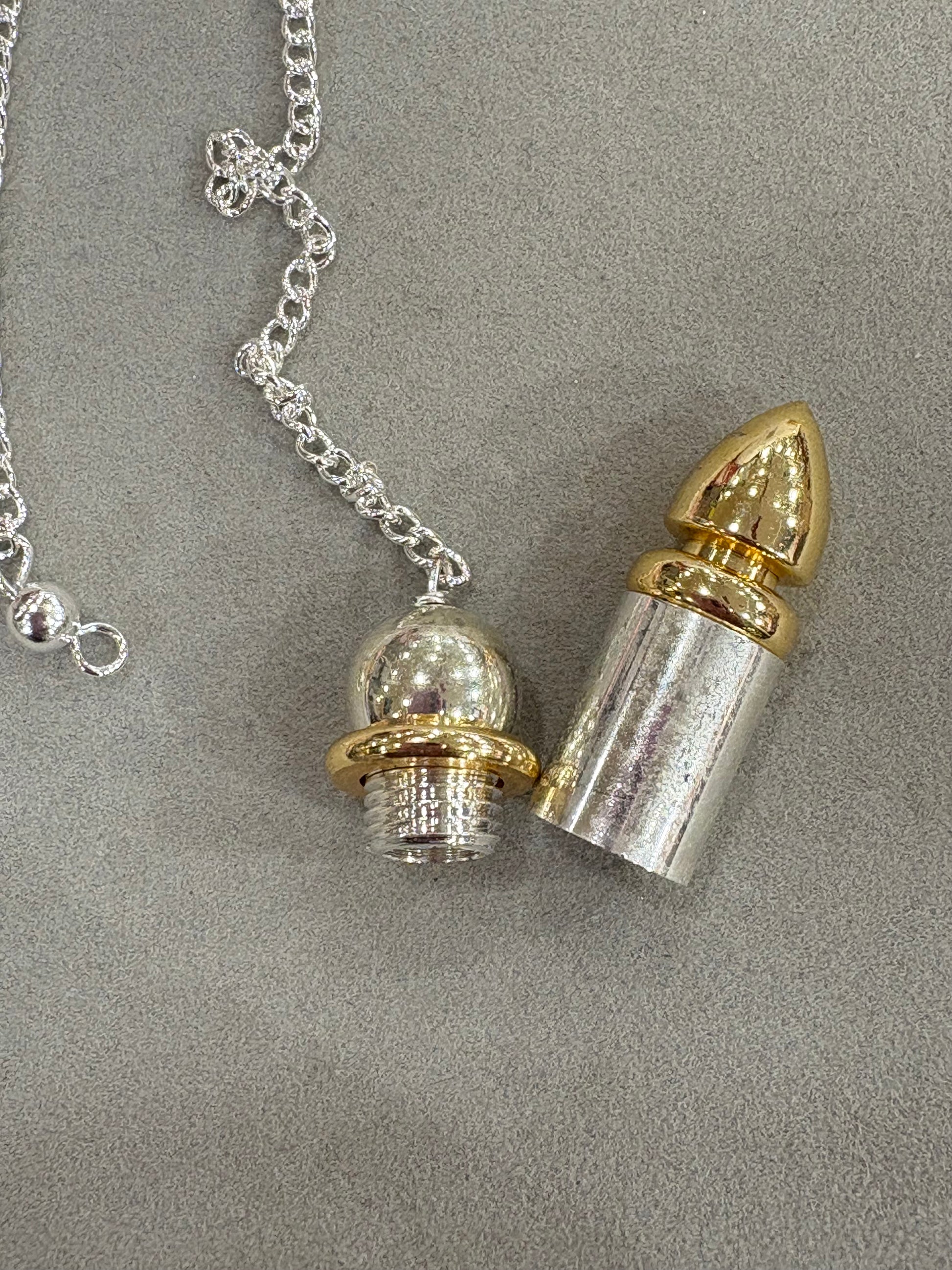 Pendolo apribile per poter inserire dei pezzi di capelli, polveri e quello che serve per fare un modo che sia più preciso.